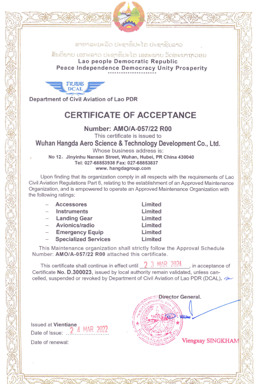 2020年5月 徑河廠區(qū)獲得EASA維修許可。